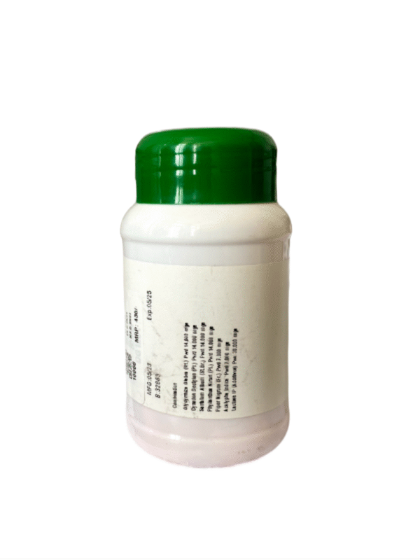 Glycyrrhiza Glabra, Cynadon Dactylon, Santalum Album, Phyllanthus Niruri, Piper Nigrum, Acalpha Indica, Lactose.