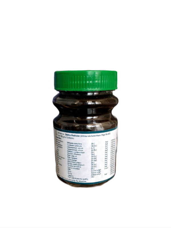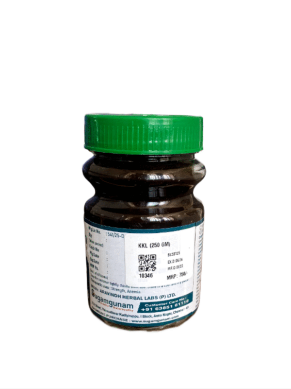 KKL Lehiyam is made with the Composition of Withania Somnifera, Cuminum Cyminum, Cinnamomum Verum, Elettaria Cardamomum, Zingiber Officinalis, Piper Nigrum, Piper Longum, Vigna Mungo, etc,. to helps for General Health Care.